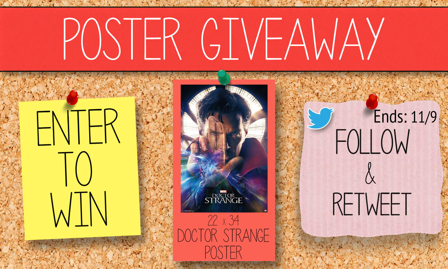 Doctor Strange, Benedict Cumberbatch, or Marvel fan--doesn't matter. You're going to love this poster and wish you got it when you had the chance...so don't miss out. We're giving it away to one of our followers on social media and it's very simple to enter. Tell all your friends and follow the step(s) below!